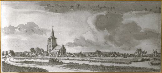 Dorp Didam in 1742 De toren heeft nog de spitse spits.